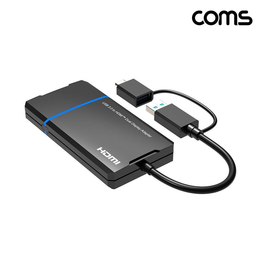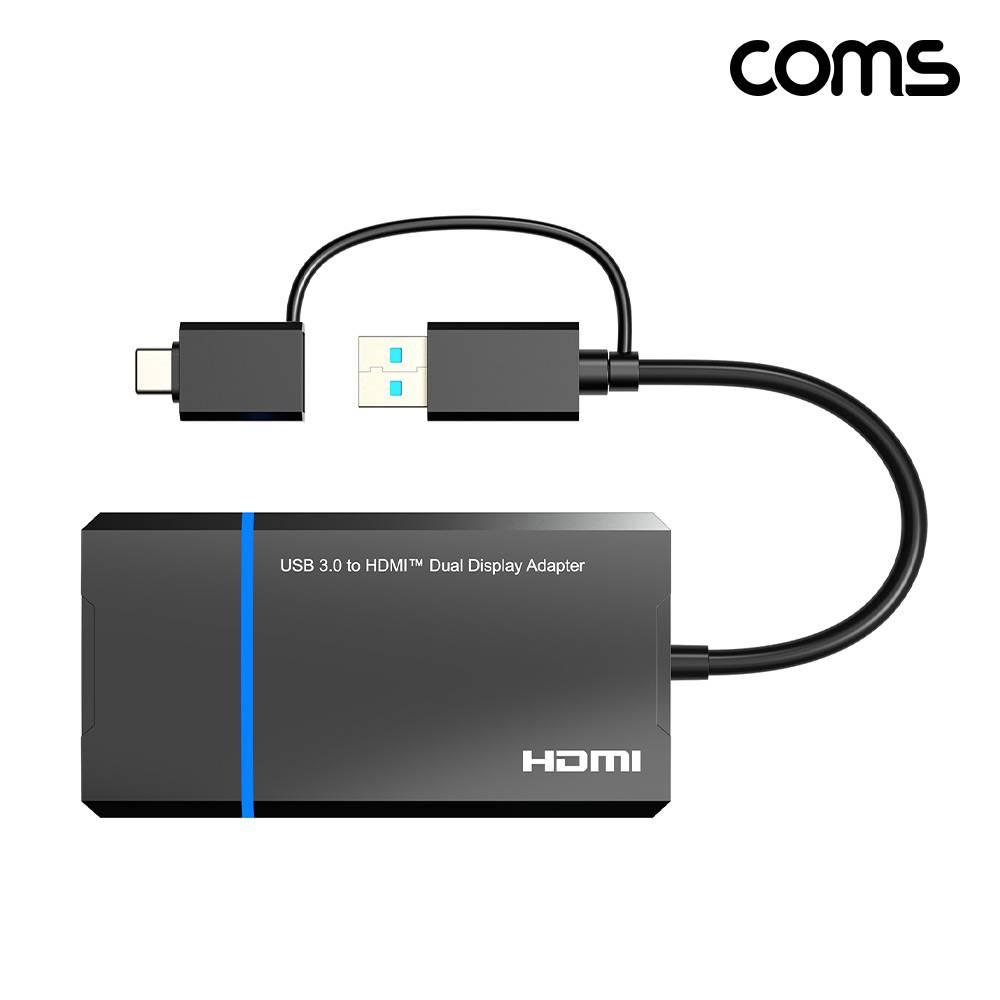 USB A C타입 to 듀얼 HDMI 어댑터 확장 미러링 화면 복제 2X1 4K 30Hz 1080P 60Hz FHD UHD PT041