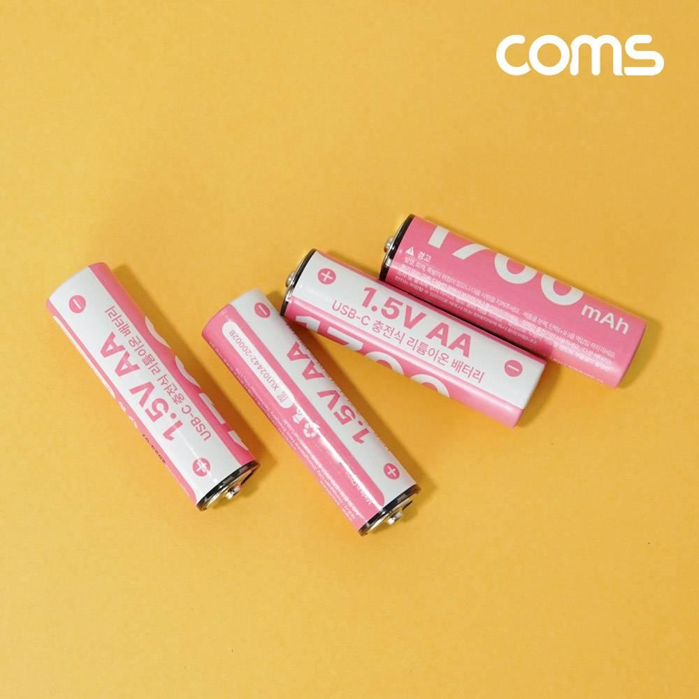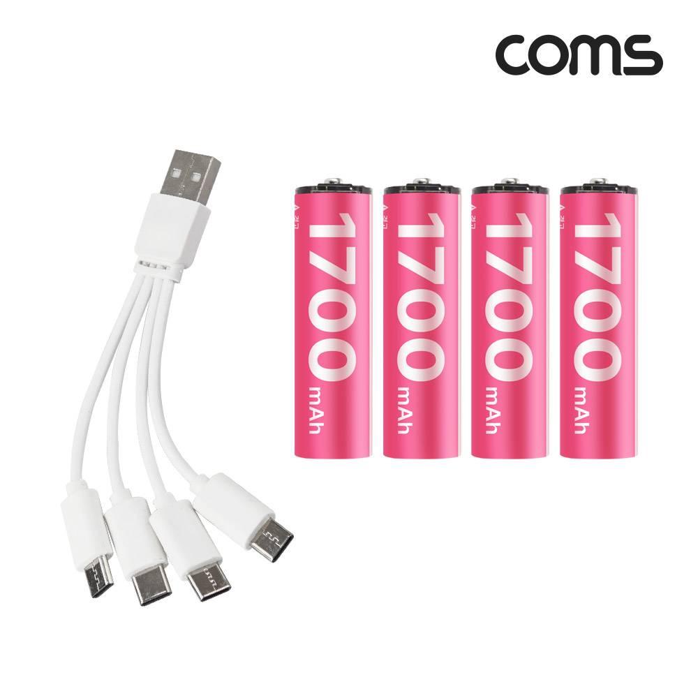 USB Type C 충전지 동시충전 4in1 케이블 충전식 건전지 리튬이온 배터리 C타입 1.5V 1700mAh Li-ion AA 4개입