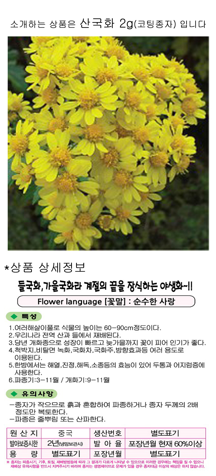 들국화 산국화 씨앗 야생화 꽃씨 종자 품종 정원 2g