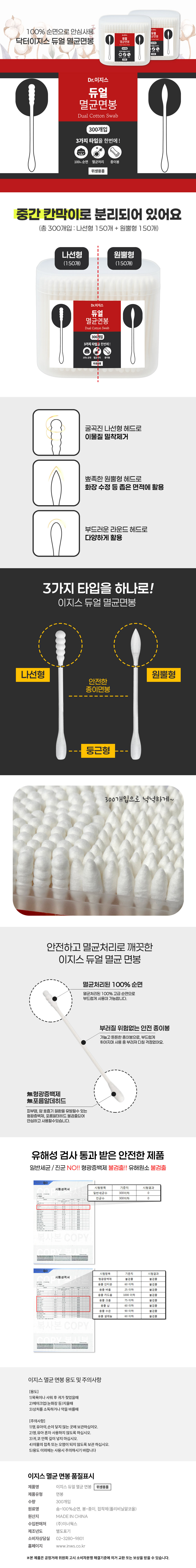 닥터이지스 3TYPE (둥근+나선+원뿔) 순면 듀얼 멸균면봉 300개입