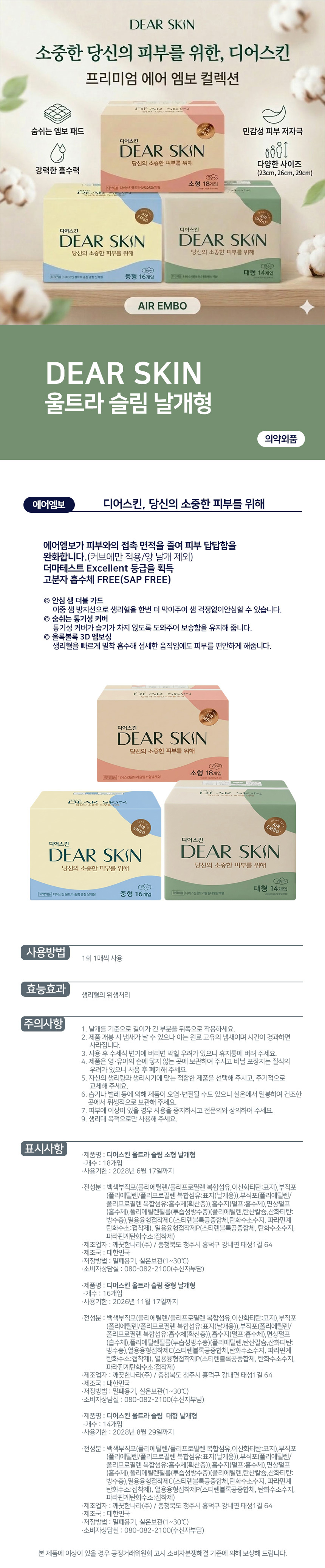 디어스킨 울트라슬림 중형 날개형 16p X 2개