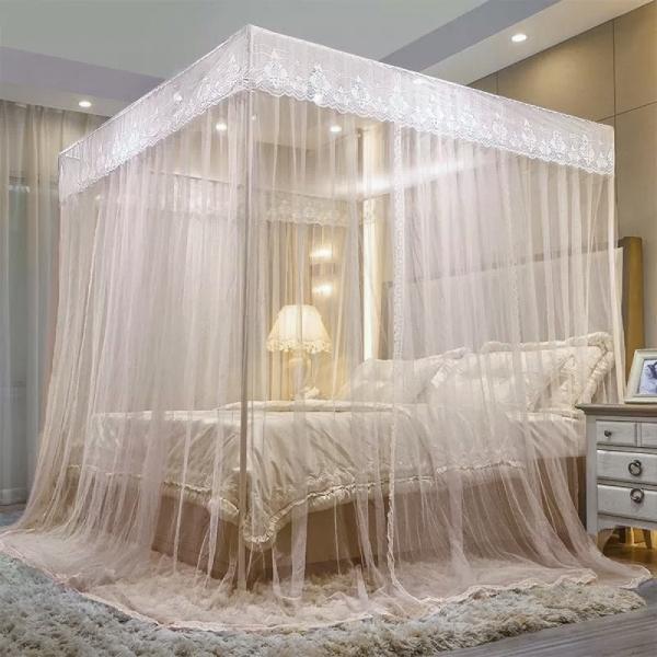 리빙피스 레이스 커튼형 침대 모기장 150x200cm 피치