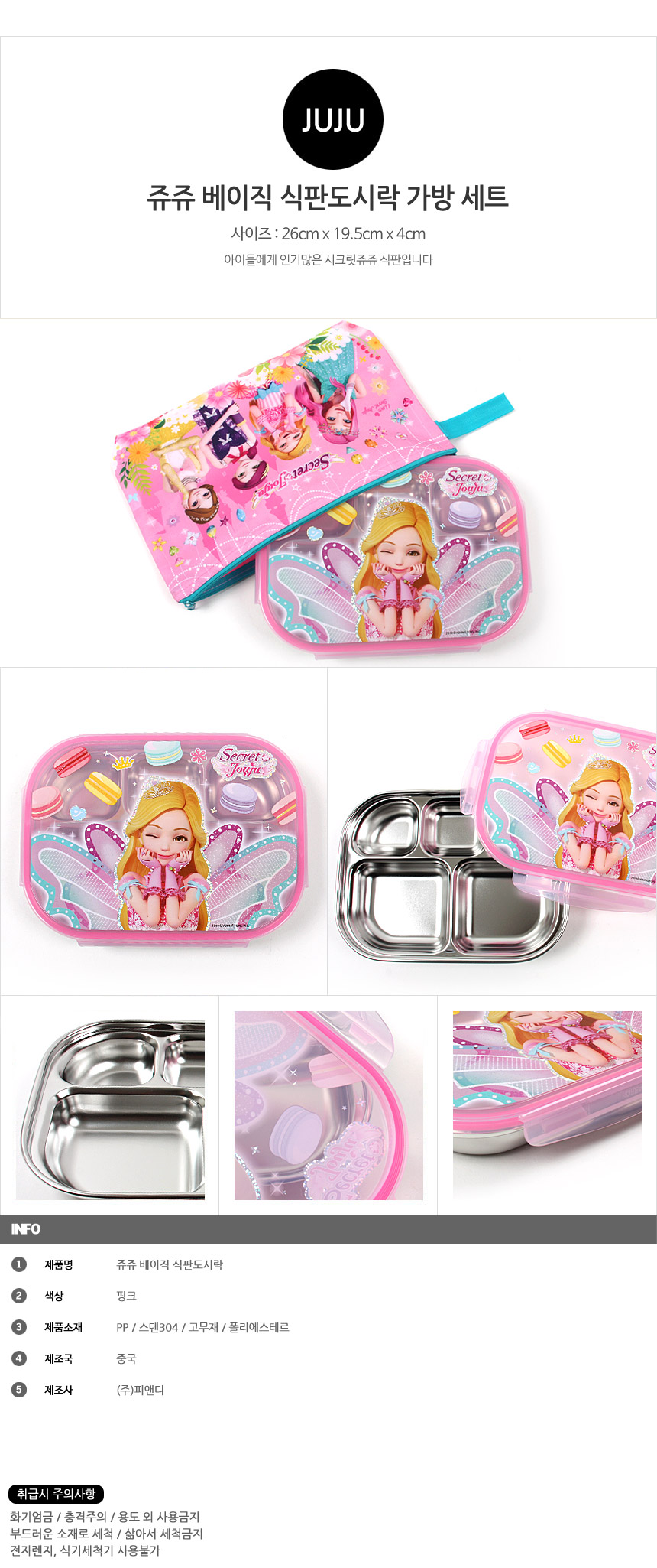 쥬쥬 베이직 식판 도시락 가방세트 캐릭터 도시락세트