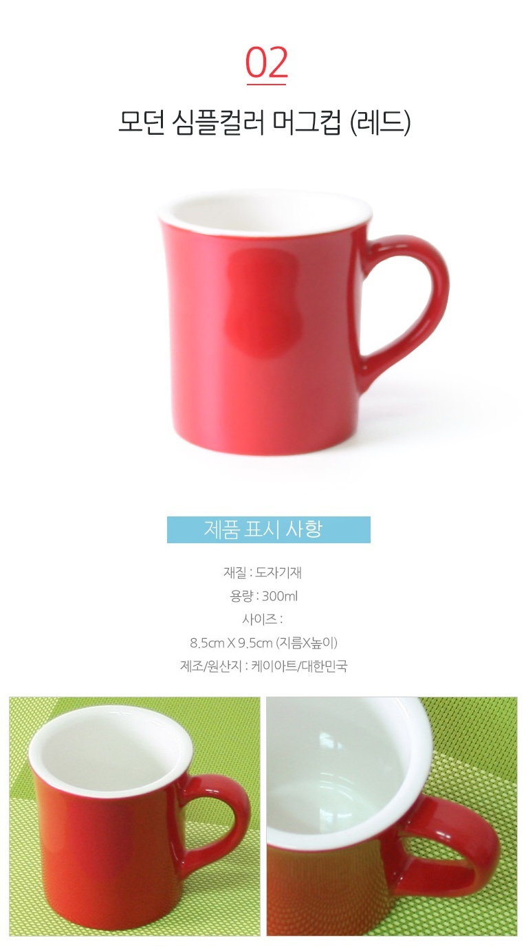 모던 심플컬러 머그컵 (레드) 도자기머그컵 머그잔 컵