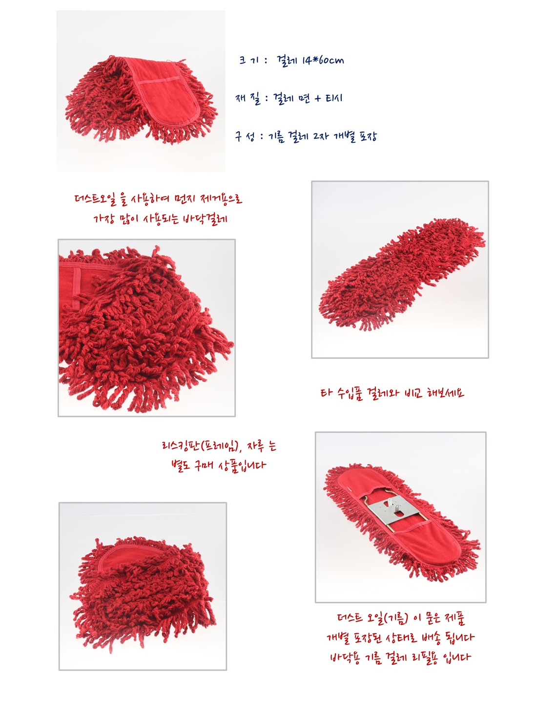 바닥 청소용 리스킹걸레 14X60cm 기름걸레 리필용