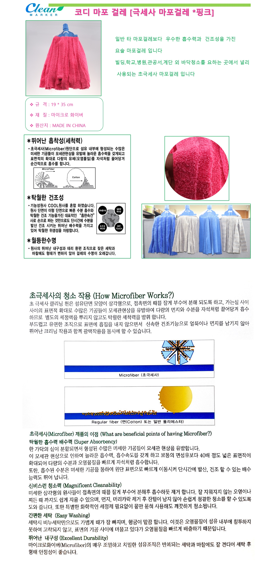 초극세사 마포 걸레 1P 핑크 리필용 바닥걸레