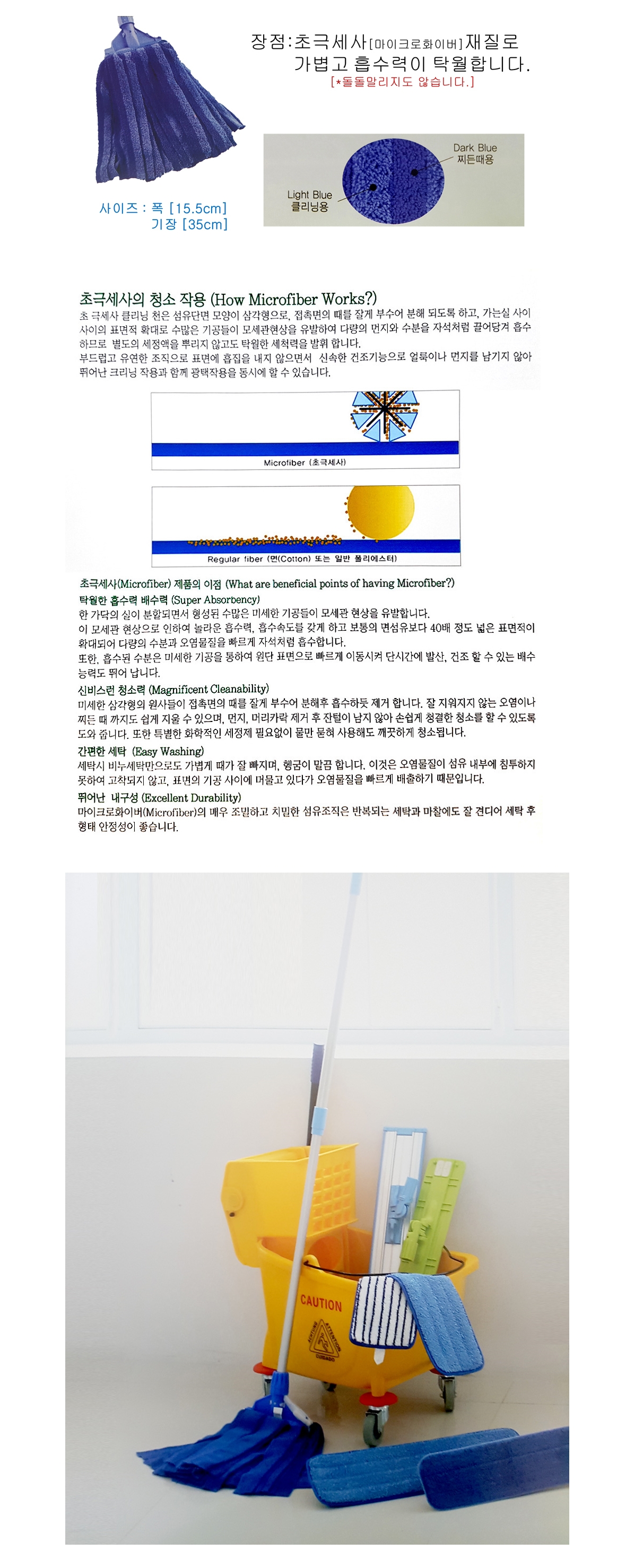 가볍고 흡수력이 좋은 고급 극세사 마포걸레 1P