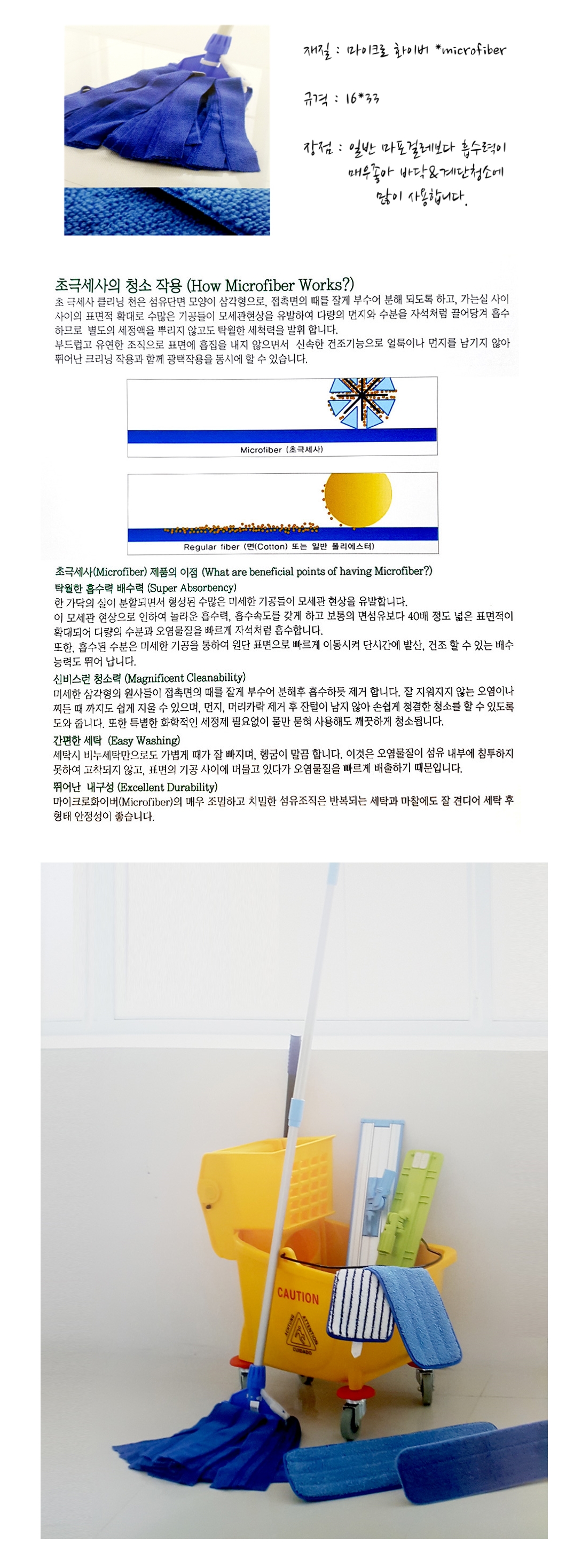 뛰어난 흡수력 편리한 세탁 극세사 마포걸레 1P 블루