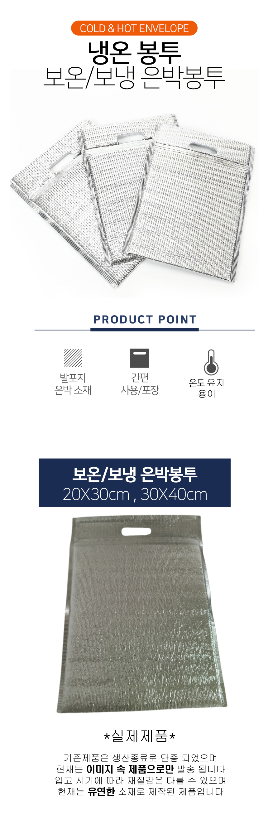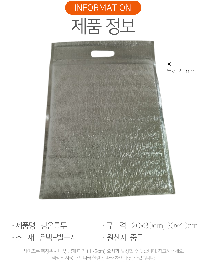 보냉 보온 봉투 은박 지퍼백 30x40cm 두툼한 아이스백