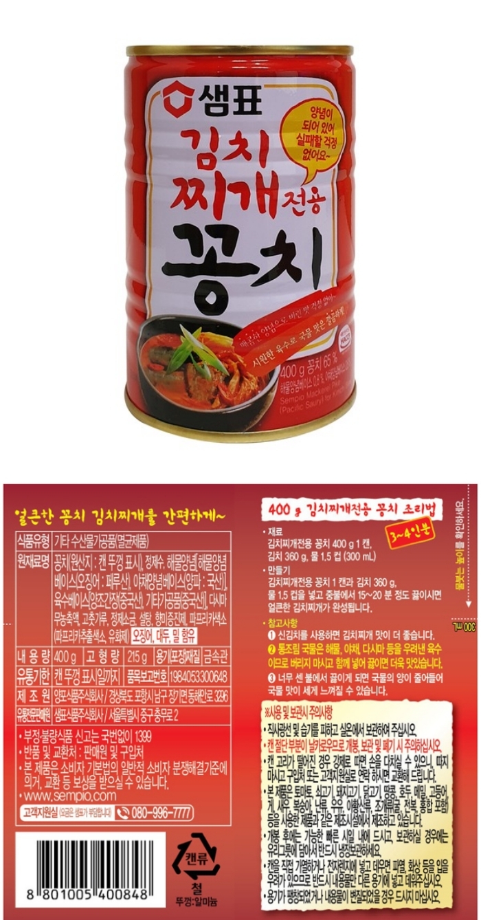 샘표 김치찌개전용 꽁치 400g