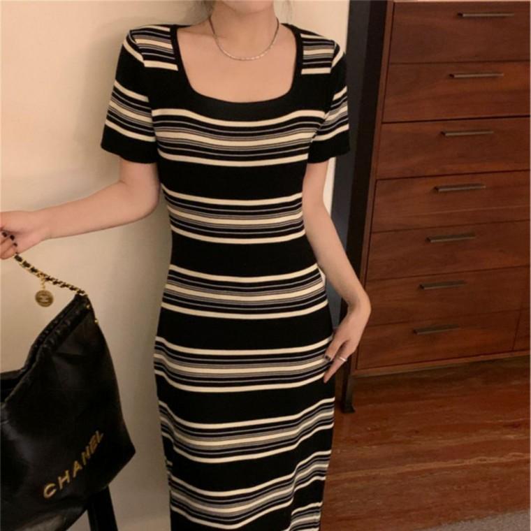 반팔 단가라 스퀘어넥 롱원피스 JSC-d0098