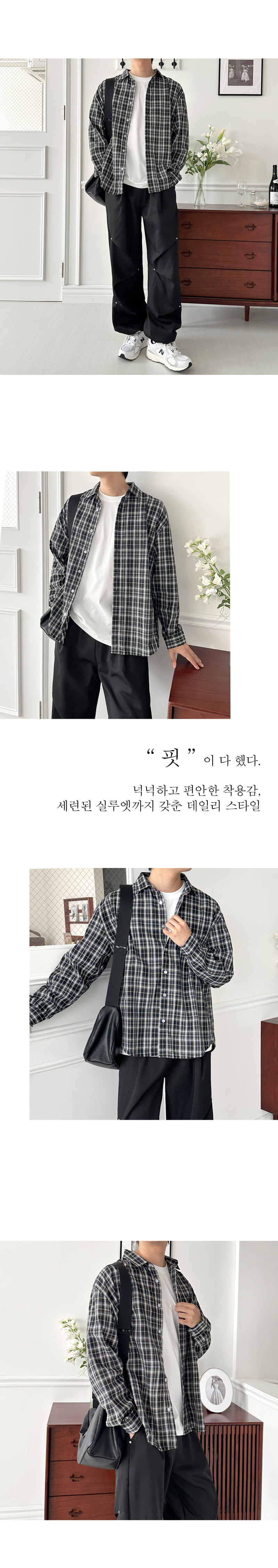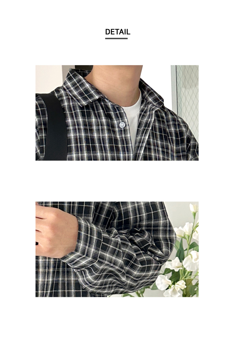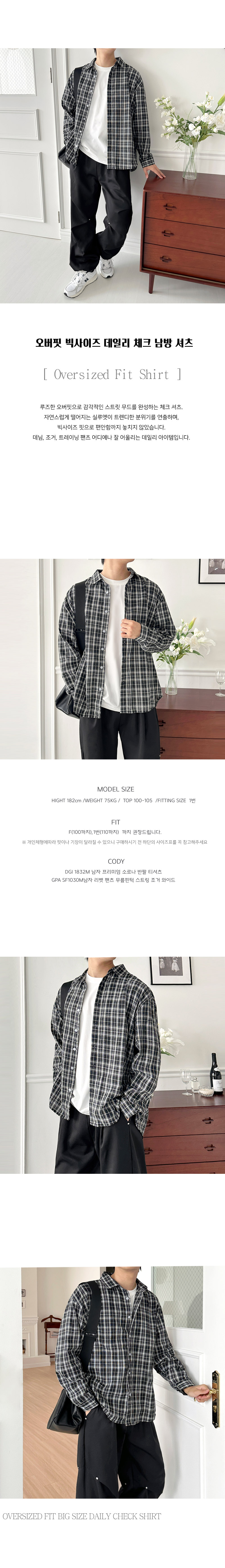 GQQ SF1039M 남자 오버핏 빅사이즈 데일리 체크 남방 셔츠
