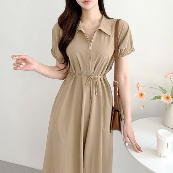 스트랩 벨트 집업 포인트 A라인 원피스