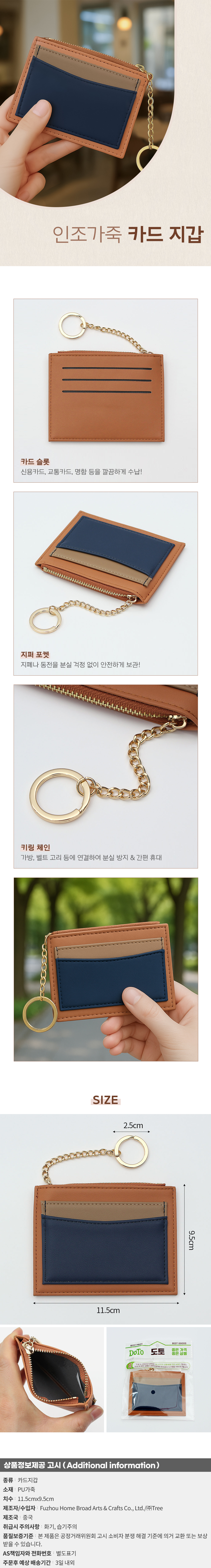 인조가죽지갑 클로닛슬림카드지갑(오렌지)키링교통카드지갑