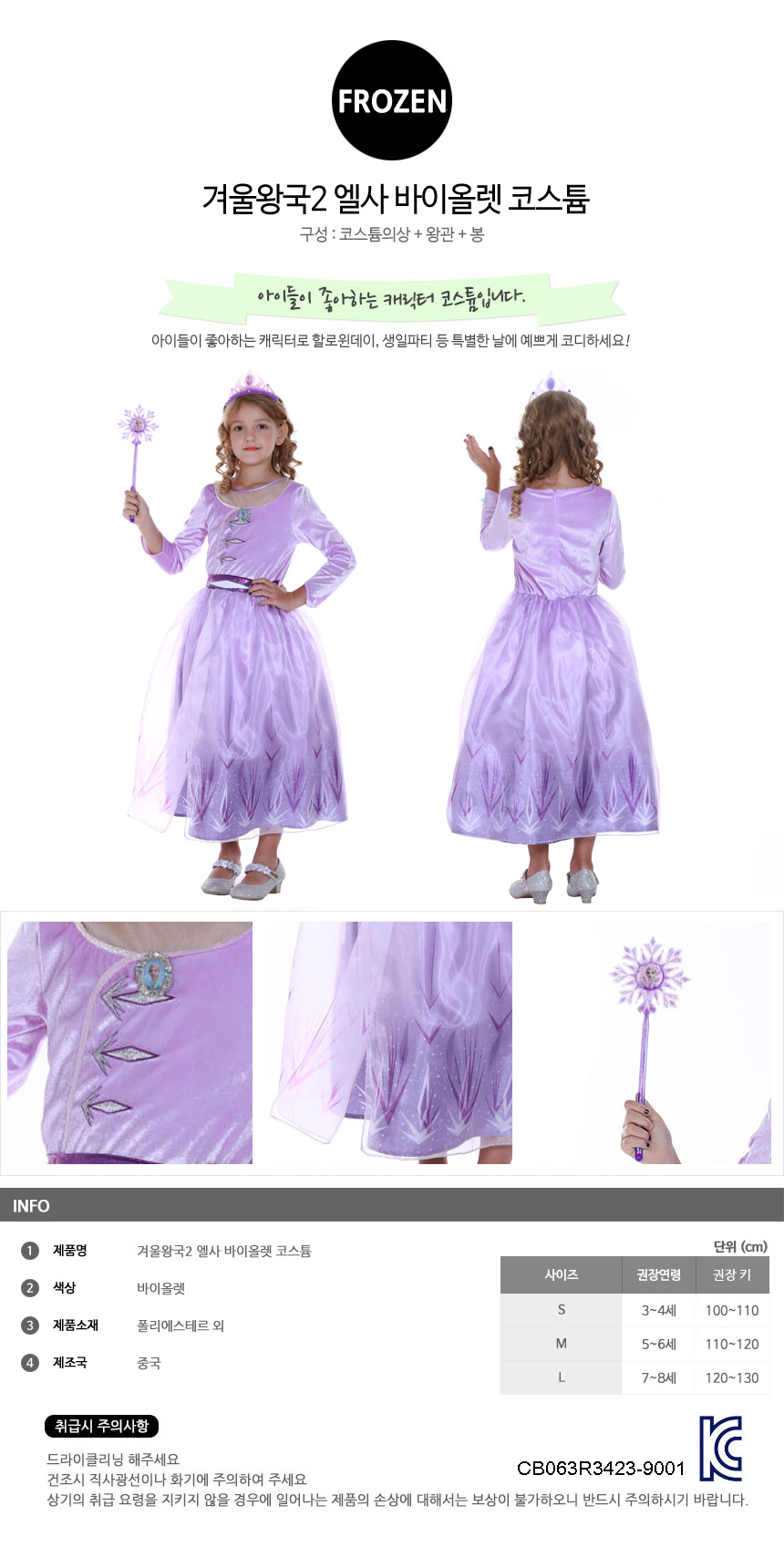 겨울왕국2 엘사 바이올렛 코스튬 여아드레스 왕관 봉
