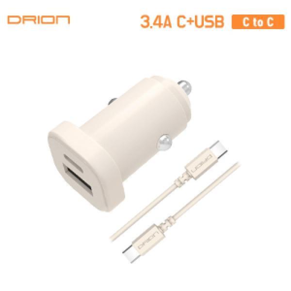 [드리온] 차량용 3.4A C+USB 2포트 충전기(CtoC 1M 케이블 포함) DR-CAR-3.4A-CU-CP